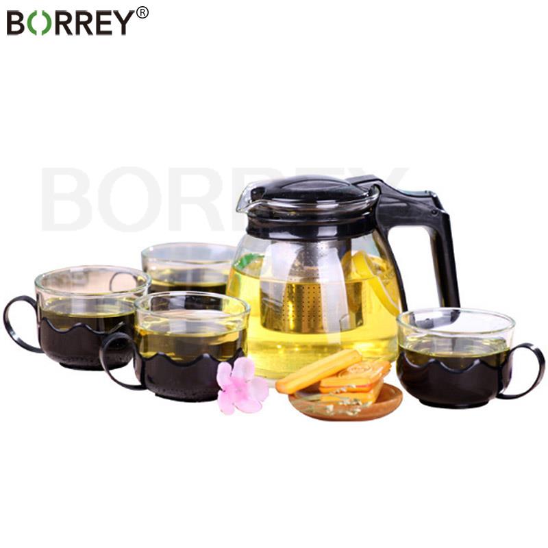 BORREY Розовый Большой Емкости Цветочный Чайник Набор Стеклянный Прозрачный Холодный Чайник Чашка Пуэр Чайник Офисный Домашний Инструмент С Фильтром Ручкой