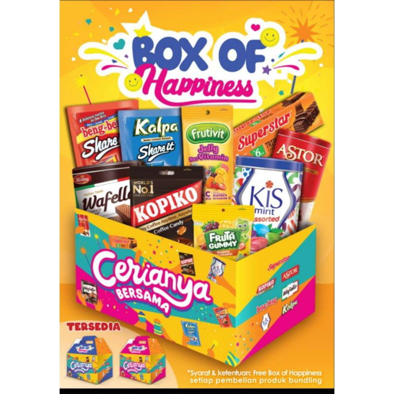 box of happines hampers dengan isi bermacam macam agar hari rayamu lebih berwarna, buka box dan rayakan hari rayamu bersama keluarga dengan berwarna.