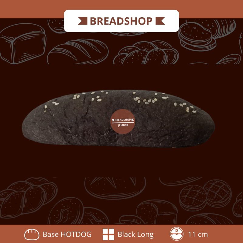 BREADSHOP ROTI HOTDOG WARNA HITAM 11CM ISI 5 | BASE HOTDOG (LONG BURGER) 11CM