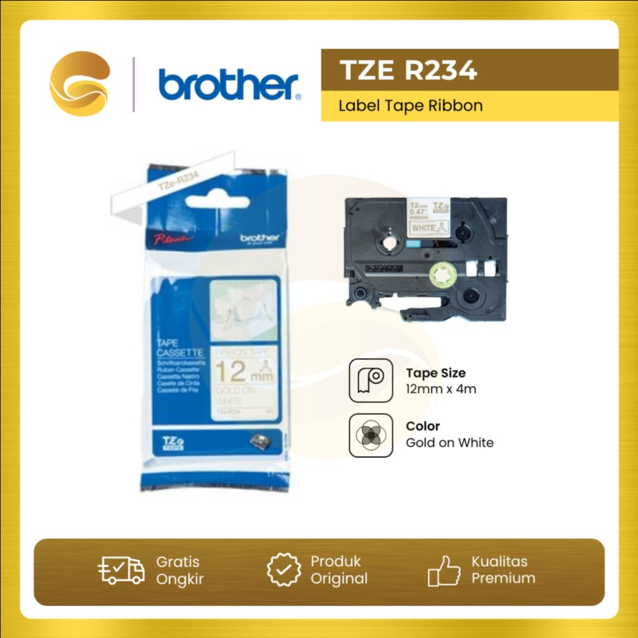 BROTHER Label Tape Tze R234 Ribbon Tape Cassette Gold on White 12mmx4m
