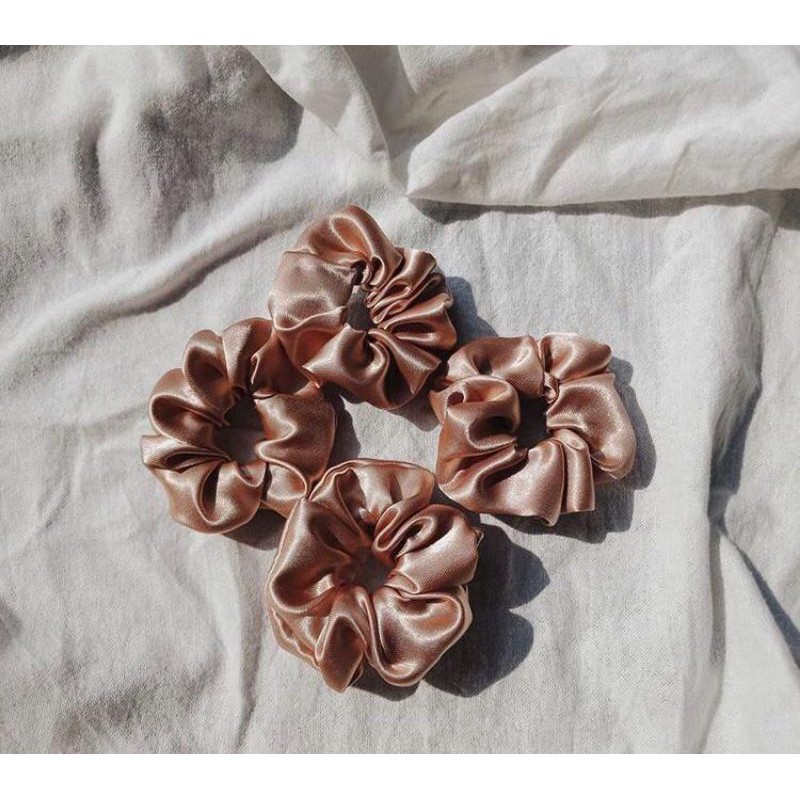 BROWN SATIN SCRUNCHIES