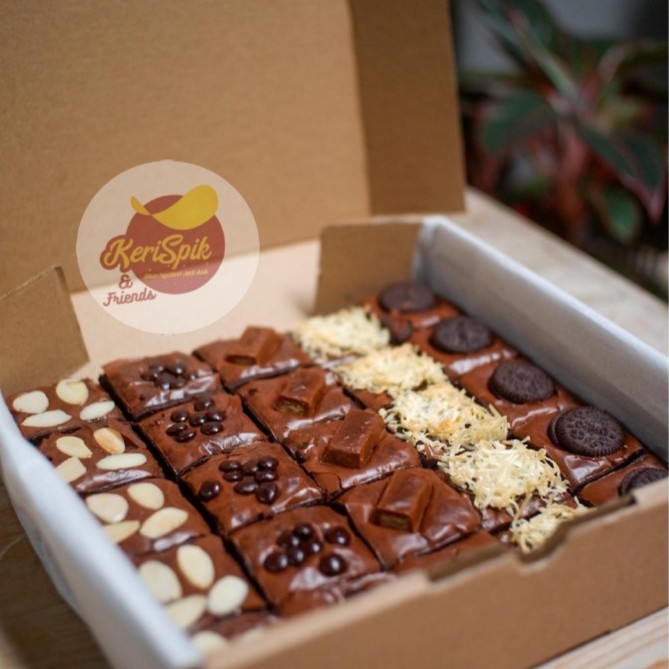 Fudgy Brownies dengan mix topping (kitkat, choco chips, keju, oreo, almond)