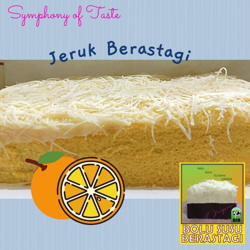 Bolu Susu yang diproses dengan cara dikukus/stim dengan rasa jeruknya yang sangat unik dan khas dengan diberi topping krim lumer dan taburan keju.