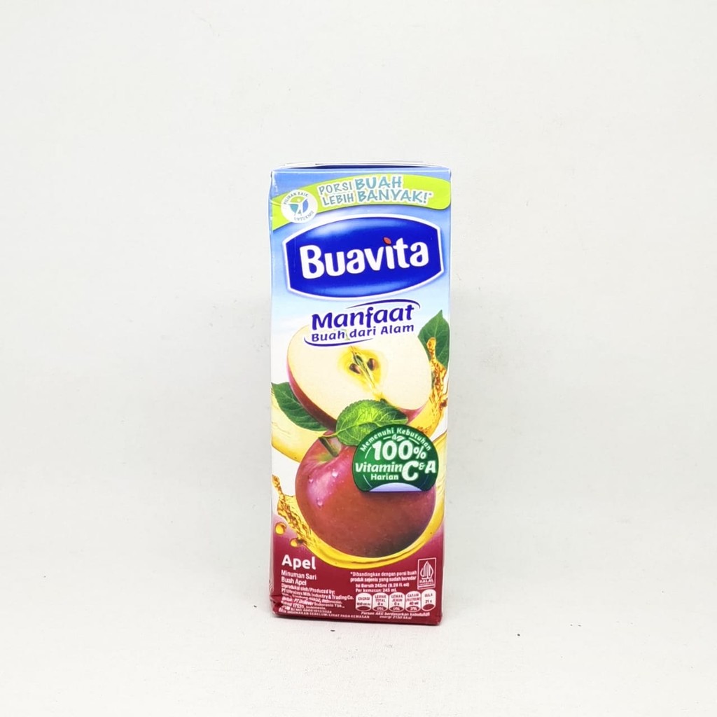 Buavita Apple adalah minuman sari buah apel segar dengan rasa manis asam yang seimbang. Dibuat dari buah apel pilihan berkualitas, kaya vitamin C dan serat alami yang baik untuk tubuh. Dikemas praktis 245 ml, siap diminum kapan saja untuk menyegarkan hari.