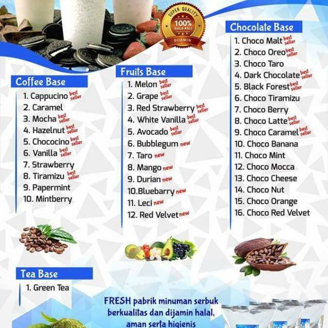 BUBUK MINUMAN ANEKA RASA HALAL, PREMIUM DAN BERKUALITAS (KEDAI / RESTO / FRANCHISE / WARUNG)