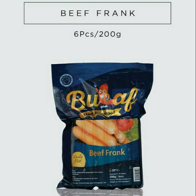 Sosis BULAF telah dikenal sebagai sosis sehat dengan kualitas premium. Dibuat dari daging sapi pilihan, pengawetan dilakukan dengan metode pengasapan sehingga tidak menggunakan bahan kimia sebagai pengawet. Selain itu, sosis Bulaf juga tanpa MSG, pewarna dan tanpa tepung. Tidak perlu dikupas (kecuali sosis salmon) karena pembungkus luar dari collagen yang baik untuk kesehatan kulit, jadi bisa langsung dimakan.