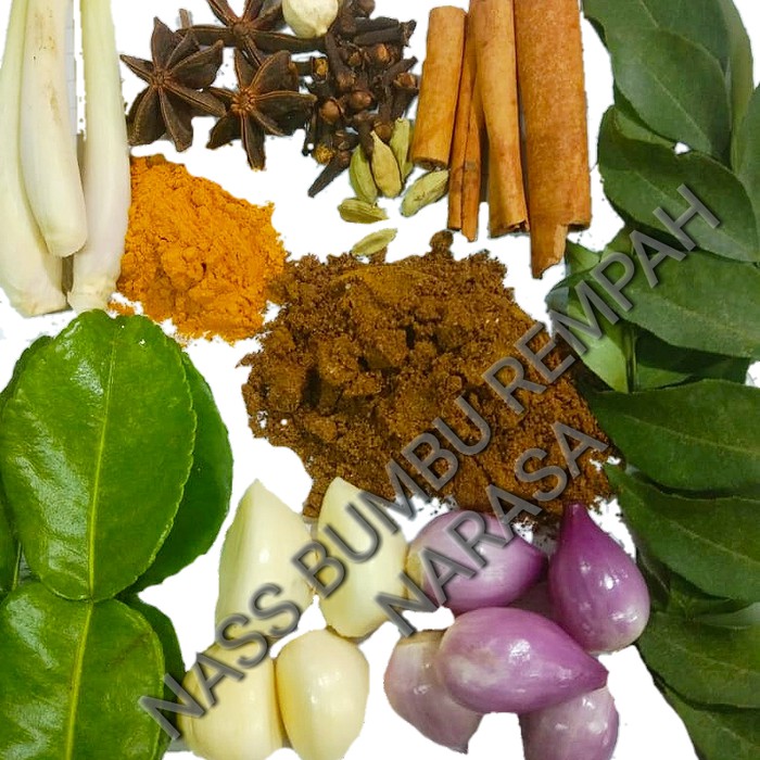 Lengkap dengan kunyit bubuk, daun kari,sereh, daun jeruk, dan rempah lainnya