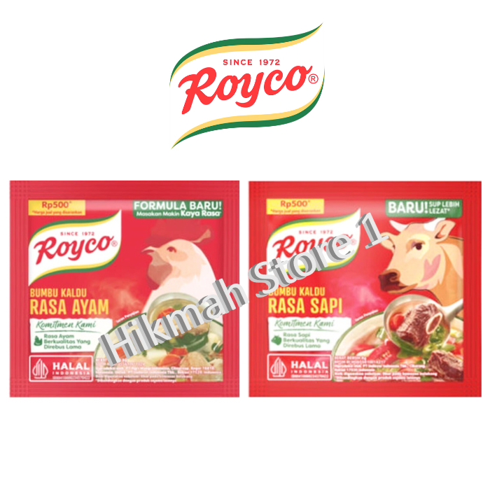 Penyedap Rasa Dengan Daging Pilihan Penyedap royco ayam merupakan salah satu bumbu dapur yang digunakan pada masakan agar menghasilkan aroma yang sedap dan rasanya tidak hambar. Diproses secara higienis dan sangat praktis. Terbuat dari daging ayam pilihan, dan rempah-rempah alami khas Indonesia sehingga mudah terserap sehingga cocok untuk beragam hidangan berkuah, aneka tumisan, dan lain-lain. Bahan-bahan yang di gunakan terdiri dari garam, gula, penguat rasa (mononatrium glutamat, dinatrium inosinat dan guanilat), Dekstrin, Lemak Nabati, Perisa Identik Alami Ayam (Mengandung Telur), Bawang Bubuk (1%), Minyak Nabati, Pati Jagung, Anti Kempal Silikon Dioksida, Lada Putih Bubuk, Pengatur Keasaman Asam Sitrat, Seledri Bubuk, Daging Ayam (0.02%) (Mengandung Antioksidan TBHQ), Kunyit Bubuk, Pewarna Tartrazin Cl 19140.