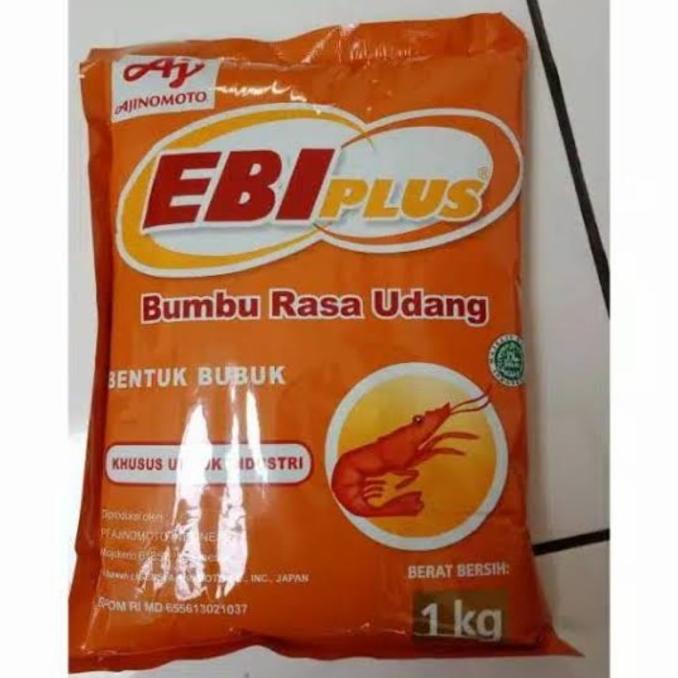 EBIplus / Bumbu rasa udang , ajinomoto 1 kg Kemasan : 1kg Merk : Ajinomoto Asal : INA Kegunaan : Penguat rasa ebi / udang