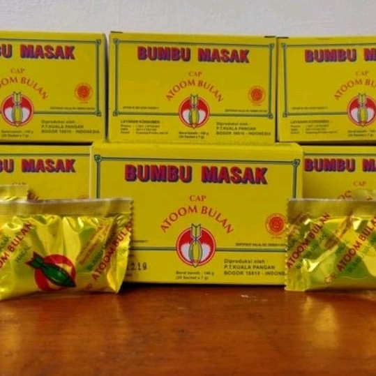 BUMBU PENYEDAP RASA MERK ATOOM BULAN atau Bumbu Masak Cap Atoom Bulan adalah bumbu masak untuk segala macam - macam masakan kuah, masakan gorengan, masakan cah, campuran rasa keripik, kerupuk, cimol, cilok dll. Keunggulan Bumbu masak cap Atom Bulan ini :