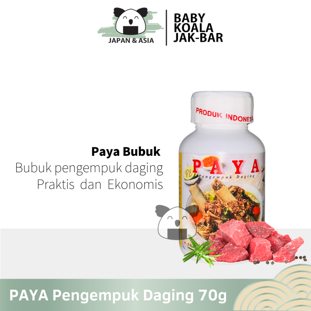 dibuat dari Paya dengan komposisi terbaik untuk mengempukkan Daging menjadi lebih empuk. tanpa rasa yang terbuat dari gula, garam, papain.