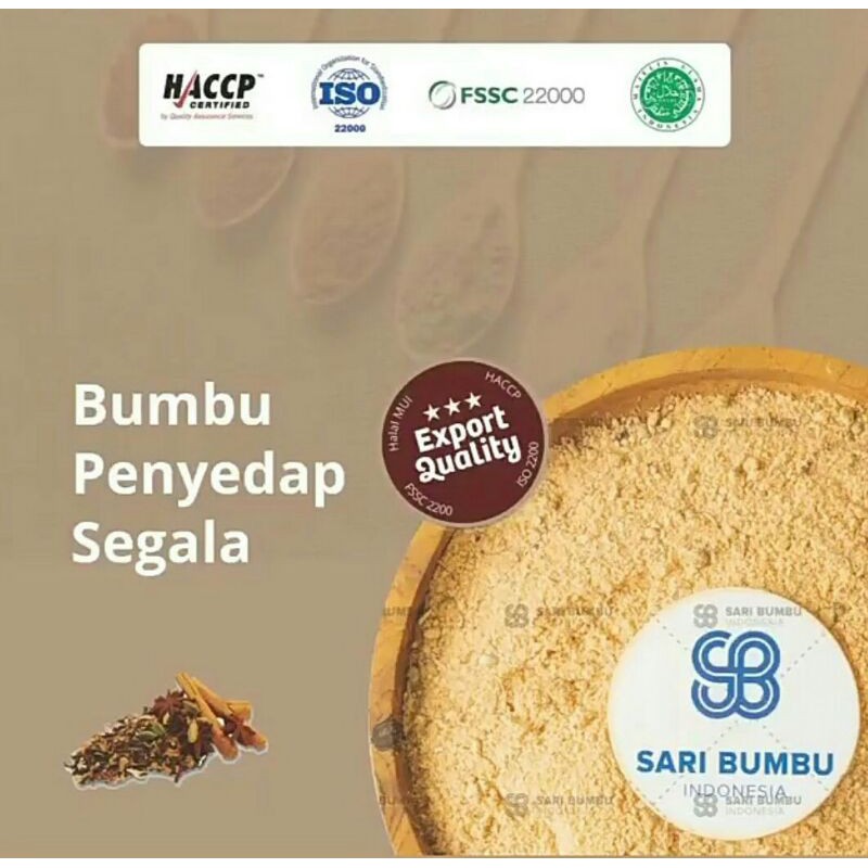 Bumbu Penyedap Segala yang di proses dengan sangat higienis dengan standar mutu Internasional.Bumbu Penyedap Segala ini murni tanpa campuran dan melewati 3 tahapan pembersihan dengan mesin standar produksi untuk Ekspor ke Jepang. Cita rasa original dengan aroma yang berkelas dari campuran berbagai rempah yang dihaluskan dan rasa yang gurih serta sedap cocok digunakan untuk berbagai jenis masakan seperti sup, rawon, soto, tumisan, ayam goreng, taburan ayam krispi, dll.