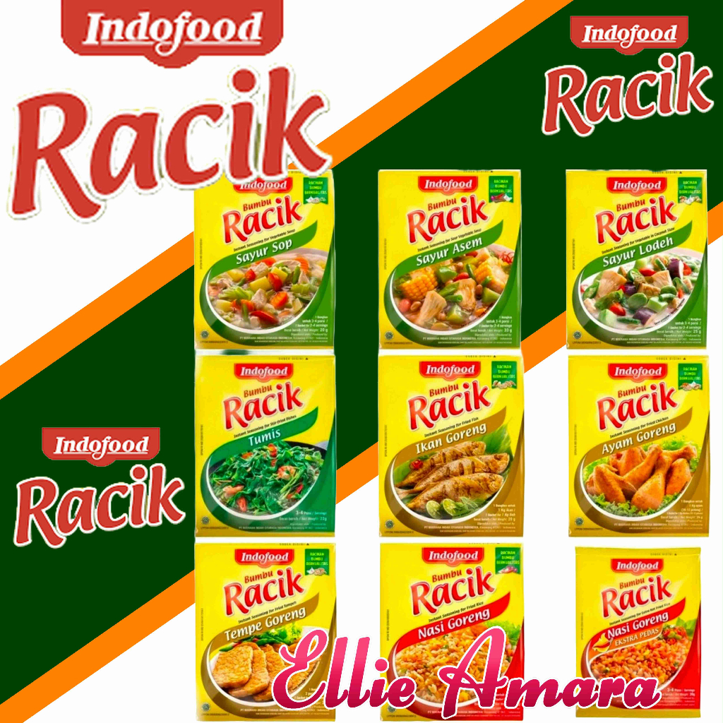 Bumbu Racik Indofood hadir sebagai solusi dalam pembuatan menu sehari-hari yang lezat dan nikmat. Bumbu Racik Indofood terbuat dari bumbu dan rempah-rempah asli yang telah dikeringkan tanpa penambahan bahan pengawet dan pewarna.