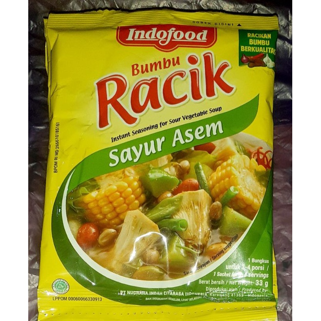 bumbu racik indofood sayur asem 1 renteng isi 10 × 20gram. bumbu racik ini tinggal tuang saja kedalam sayur cukup tambah garam ,gula , dan penyedap rasa jika perlu.