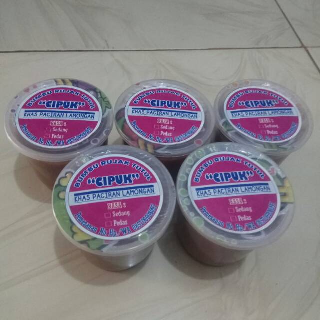 Bumbu rujak tutul CIPUK adalah oleh2 khas Kecamatan Paciran - Kabupaten Lamongan. Praktis tinggal colek, bisa dg buah ataupun krupuk. Mudah di bawa kemana".