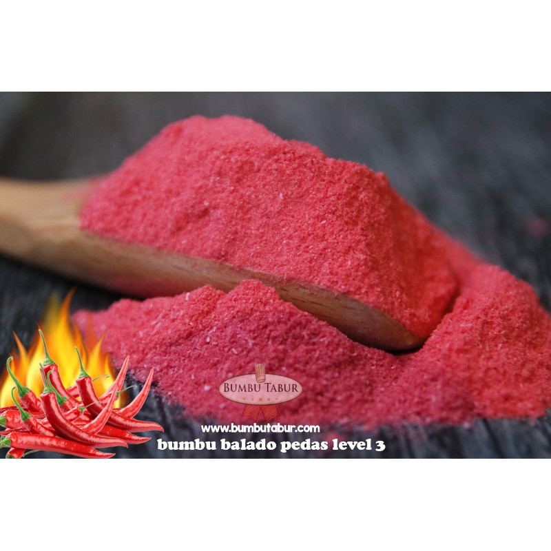 Bumbu Tabur Balado Pedas Lvl 3 ini memiliki rasa manis pedas pada tingkat level 3 dan sedikit gurih. Bumbu Tabur Balado Pedas Lvl 3 ini memiliki rasa pedas manis dan sedikit gurih, ditambah rasa panggang daging. Bumbu Tabur Balado Pedas Lvl 3 ini cocok digunakan sebagai taburan rasa aneka keripik, (seperti keripik singkong, keripik usus, keripik kentang, keripik jamur, keripik tempe, rengginang, kerupuk, macaroni, lidi, dll). Atau dapat ditaburkan di berbagai macam cemilan / gorengan (seperti kentang goreng, tahu bulat, bakso goreng, singkong, pangsit, dll).
