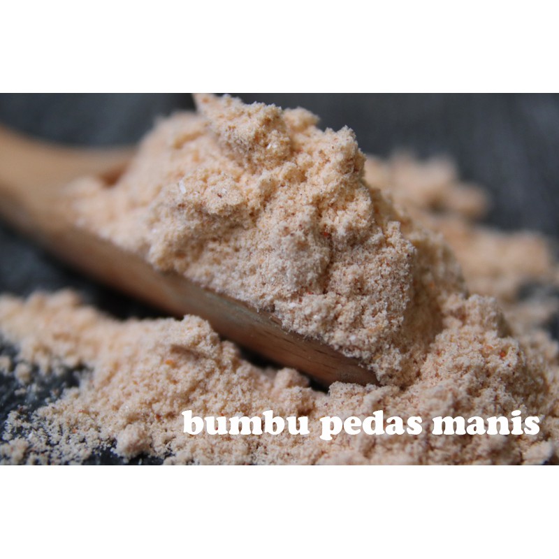 Bumbu tabur pedas manis ini mempunyai perpaduan yang pas antara rasa pedas asli dan manis yang pas. Bumbu pedas manis ini cocok untuk aplikasi kerupuk, keripik tempe, jamur crispy, tahu crispy, tahu bulat, mie lidi, cilok, makaroni dan lain-lain.