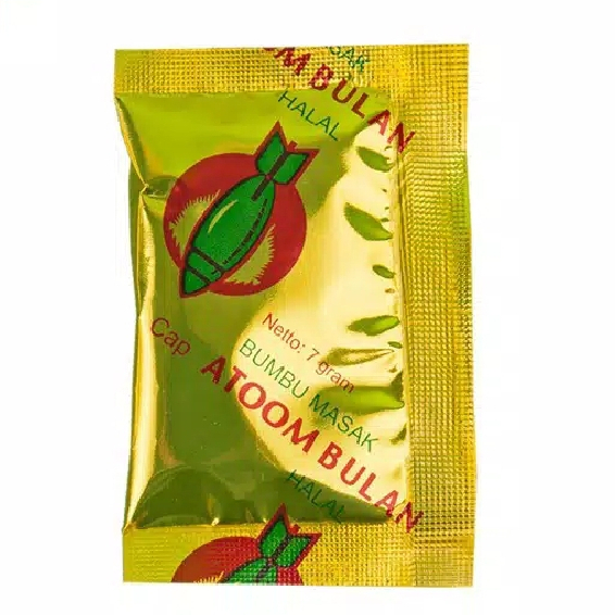 BUMBU PENYEDAP RASA MERK ATOOM BULAN atau Bumbu Masak Cap Atoom Bulan adalah bumbu masak untuk segala macam - macam masakan kuah, masakan gorengan, masakan cah, campuran rasa keripik, kerupuk, cimol, cilok dll. Keunggulan Bumbu masak cap Atom Bulan ini :