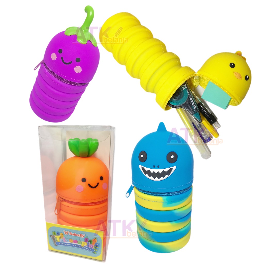 BUTTERFLY - Telescopic Pencil Case Silikon Cute Rasleting RANDOM - Pcs