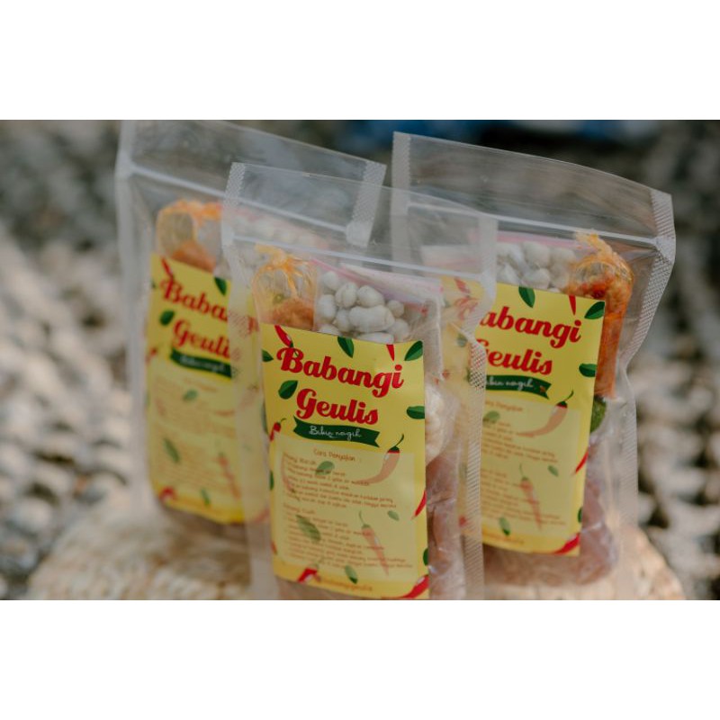 Babangi geulis adalah camilan khas Sunda, yang memiliki tekstur chewy dengan rasa yang gurih. Dinikmati dengan sambal dan bumbu yang memiliki cita rasa gurih, asam dan pedas. Cocok banget dimakan saat kamu butuh kesegaran dan kepedasan dalam menghadapi hidup ini
