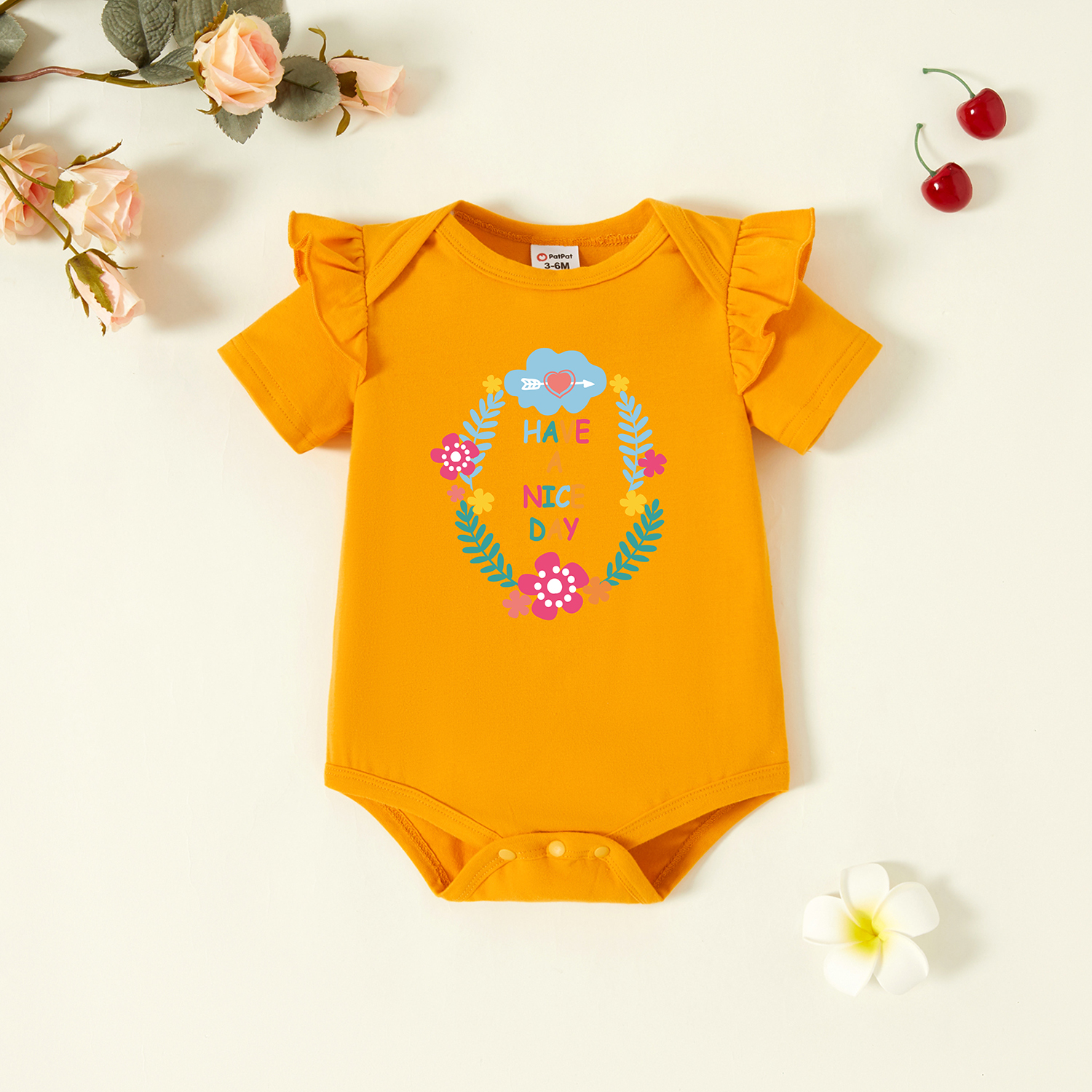 Baby Graphic Flutter-sleeve Short-sleeve Romper