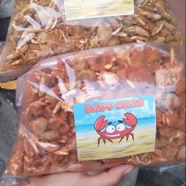 Baby crab crispy ukuran 1kg dan sudah dibumbui dengan bumbu bbq, dan bisa untuk paket usaha karena bisa di pak ulang dengan ukuran 100gr.