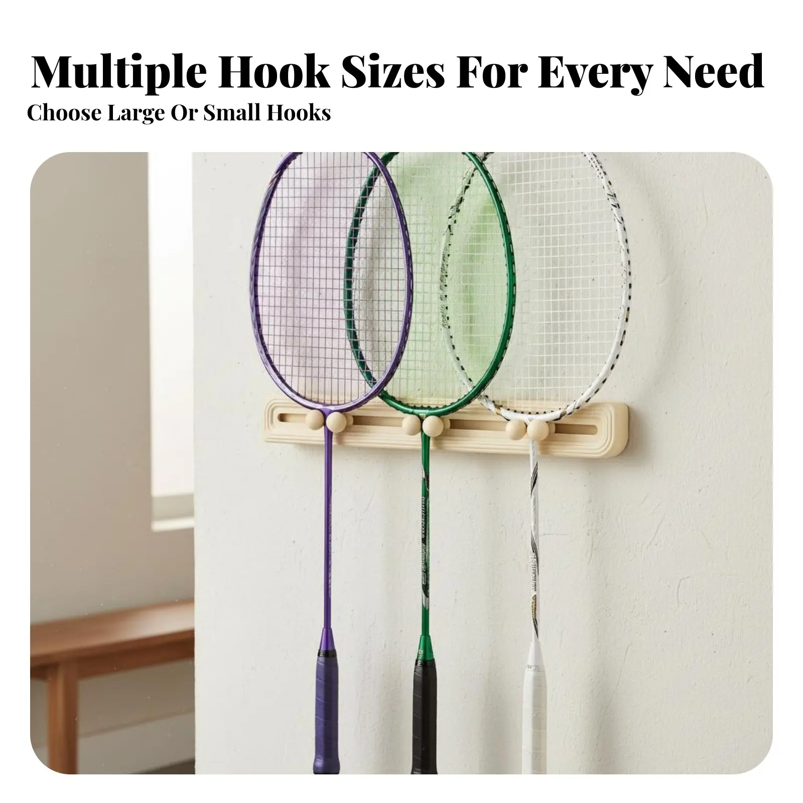 Badminton Racket Wall Mount No Punching Holes Wall Mounted Racket Rack Sliding Hook Badminton Hanger Space Saving Easy Reach