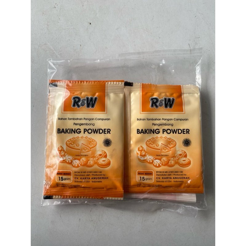Baking powder , untuk mengembangkan kue kemasan 15gr. 1 pak isi 10pcs