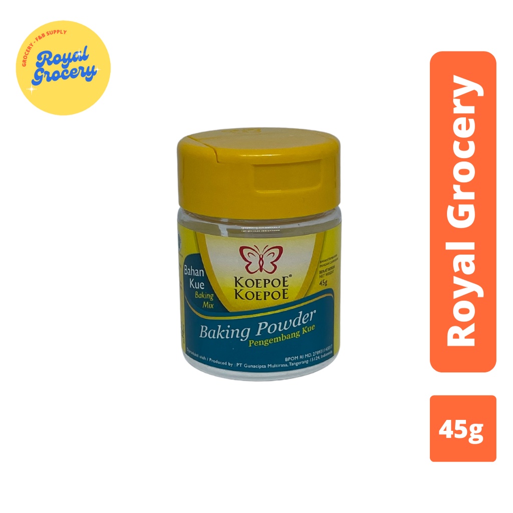 Baking Powder Koepoe Koepoe digunakan untuk mengembangkan berbagai macam adonan kue, roti, dan biskuit. Baking powder ini dibuat dari bahan pilihan bermutu tinggi.