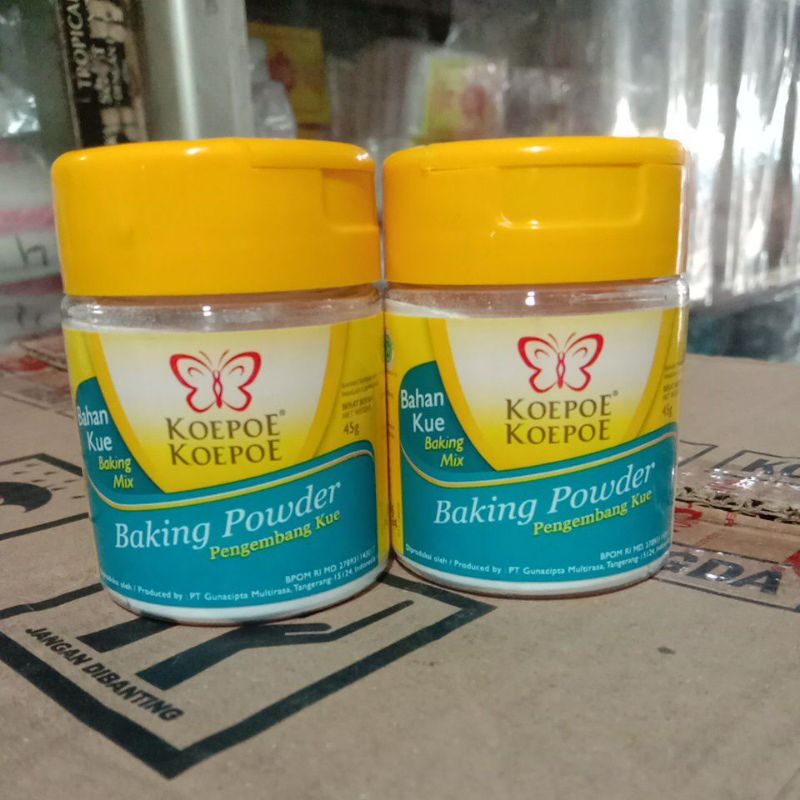 Baking powder Koepoe Koepoe digunakan untuk mengembangkan berbagai macam adonan kue, bolu, roti, dan biskuit.Dibuat dari bahan pilihan yang bermutu tinggi untuk kesempurnaan kue anda.
