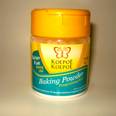Baking powder Koepoe Koepoe digunakan untuk mengembangkan berbagai macam adonan kue, bolu, roti, dan biskuit. Dibuat dari bahan pilihan yang bermutu tinggi untuk kesempurnaan kue anda.