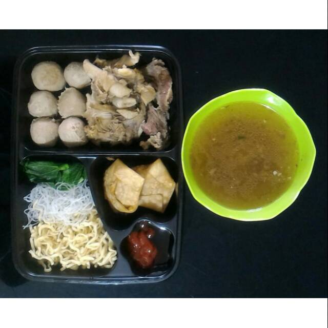 Bakso sapi berisi 6 butir dilengkapi dengan iga sapi, pangsit goreng, mie kuning dan putih, sayur dan kuah kaldu yang gurih. Dikemas dengan rapih dan bersih, sehingga terjaga higienitas sampai tangan konsumen. Kami memasak berdasarkan pesanan