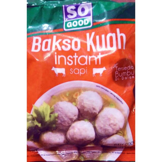 Bakso kuah sapi instan produksi So Good. Berat 120 gram. Produk siap saji dan praktis.
