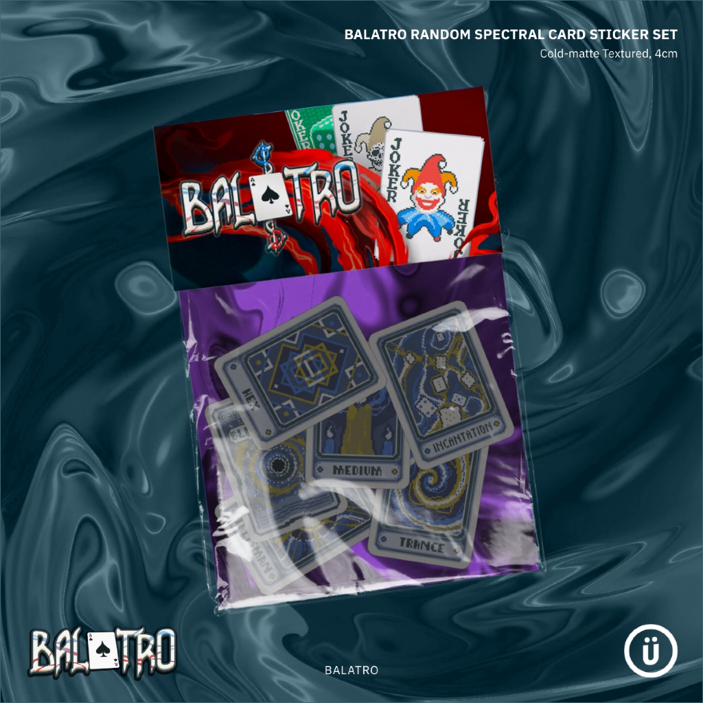 Unleash the unpredictability of Balatro with this sticker set featuring 6 random Spectral cards! Each set offers a surprise selection of vibrant, high-quality stickers showcasing the unique artistry of Balatro’s Spectral.
