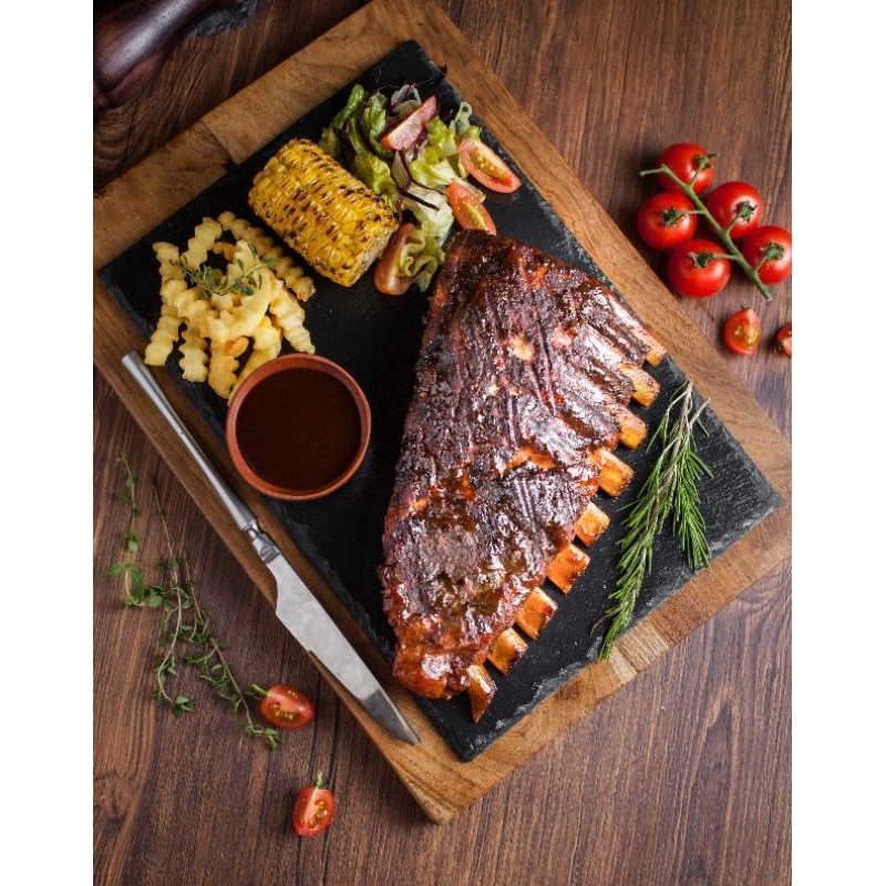 Dijual Frozen Iga nya saja dengan original BBQ sauce (Gambar side dish french fries dll hanya untuk Dine in di restoran Obelixx Kerobokan Bali)