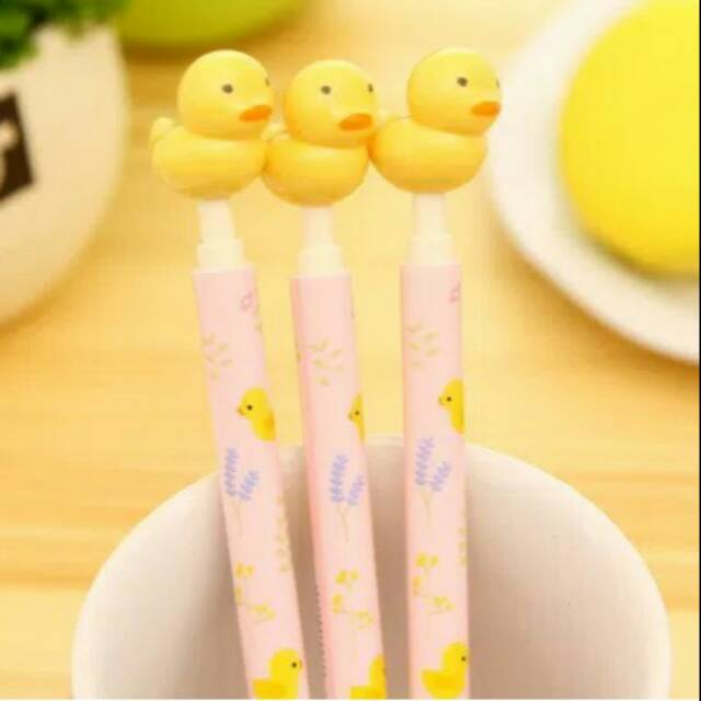 Ballpoint bebek mata pulpen 0.5mm, tinta biru. Desain bebek cute, pulpen enak digunakanm tinta lancar.