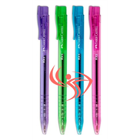 Produk baru dari Faber Castell. Ballpoint RX-5 dengan mata pena yang memudahkan tinta untuk menulis dan enak dalam genggaman. dengan tinta warna hitam namun tersedia dalam 4 variasi warna casing, Hijau, biru, pink, dan biru. Dengan warna tinta hitam. Cocok untuk pelajar, mahasiswa dan perkantoran.