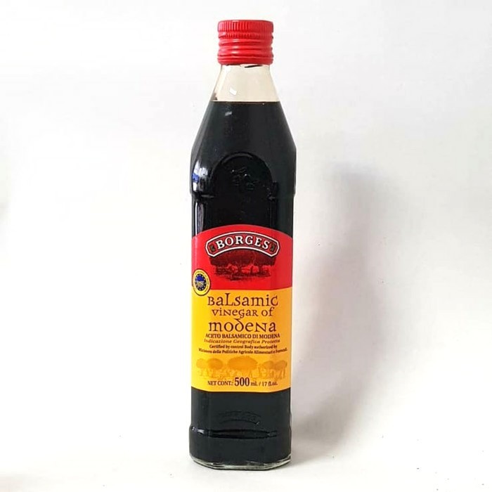 Cuka Balsamic Modena Borges mendapatkan rasa asli dan lezatnya dari waktu yang dihabiskan dalam tong kayu untuk dimatangkan. Dengan rasa manis alami dari anggur Italia. Sertifikasi IGP menjamin kualitas dan rasa cuka , yang diproduksi di gudang bawah tanah borges di Modena, Italia.