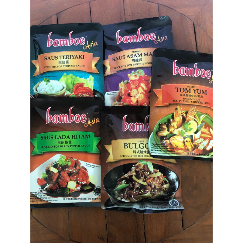 Bamboe bumbu masak instan terbuat dari rempah-rempah pilihan yang berkualitas. Bumbu instan dengan tekstur yang cair sehingga cita rasa tetap terjamin. Sebagai bahan tambahan masakan