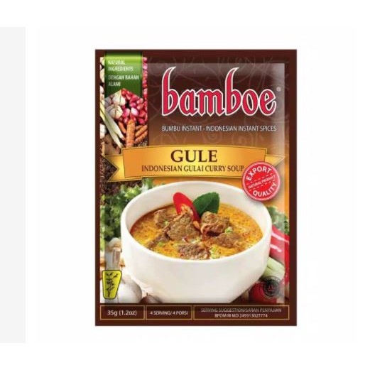 Bumbu Gule instant kemasan kantong brand Bamboe dengan berat bersih 35 gr