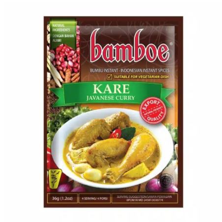 Bumbu Kare instant kemasan kantong brand Bamboe dengan berat bersih 36 gr