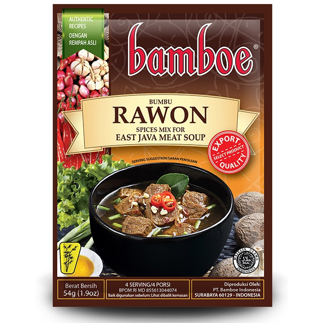 Bamboe Rawon Bumbu Masak Instan merupakan bumbu instan yang praktis dan lezat untuk memudahkan Anda dalam memasak. Diproduksi menggunakan pilihan bahan-bahan natural yang fresh dan berkualitas, tanpa tambahan extract, essence, maupun pewarna buatan. Dengan memasak menggunakan bumbu racikan dari Bamboe maka dapat menyempurnakan hidangan Anda sehari-hari. Kini hadir dalam aneka citarasa khas Asia ke dapur Anda. Nikmati masakan yang lezat di setiap asupan.