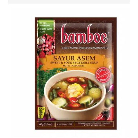 Bumbu Sayur Asem instant kemasan kantong brand Bamboe dengan berat bersih 60 gr