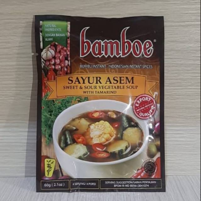 Bumbu Sayur Asem instant kemasan kantong brand Bamboe dengan berat bersih 60 gr