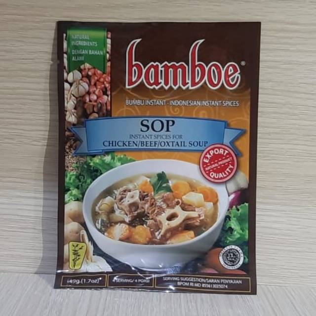 Bumbu Sop instant kemasan kantong brand Bamboe dengan berat bersih 49 gr