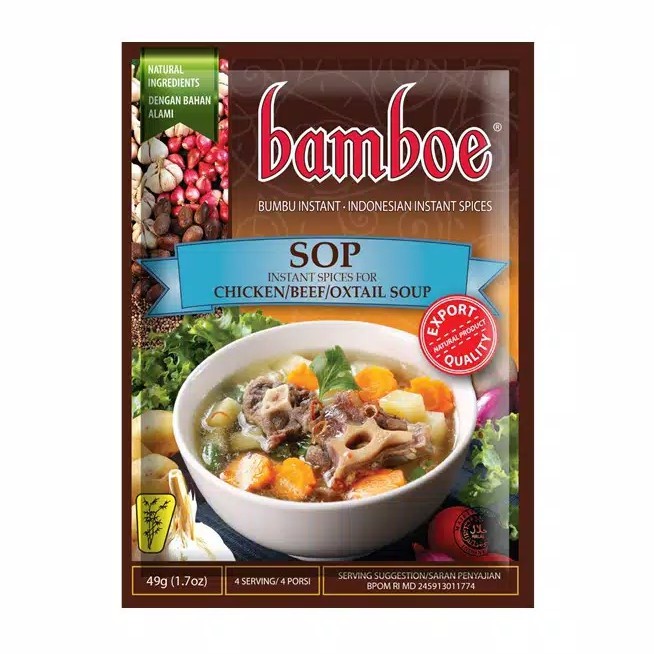 Bumbu Sop instant kemasan kantong brand Bamboe dengan berat bersih 49 gr