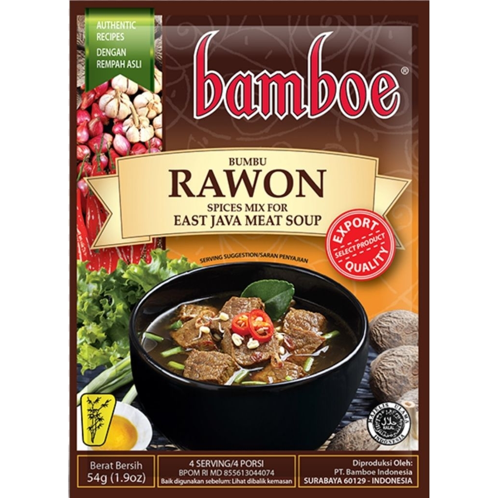 Bamboe Rawon adalah bumbu instan populer yang digunakan untuk membuat hidangan rawon, yaitu sup daging hitam khas Jawa Timur yang memiliki warna gelap dan rasa gurih manis khas kluwek. Bumbu ini mempermudah proses memasak rawon, karena sudah mengandung berbagai rempah dan bumbu dasar yang diperlukan.