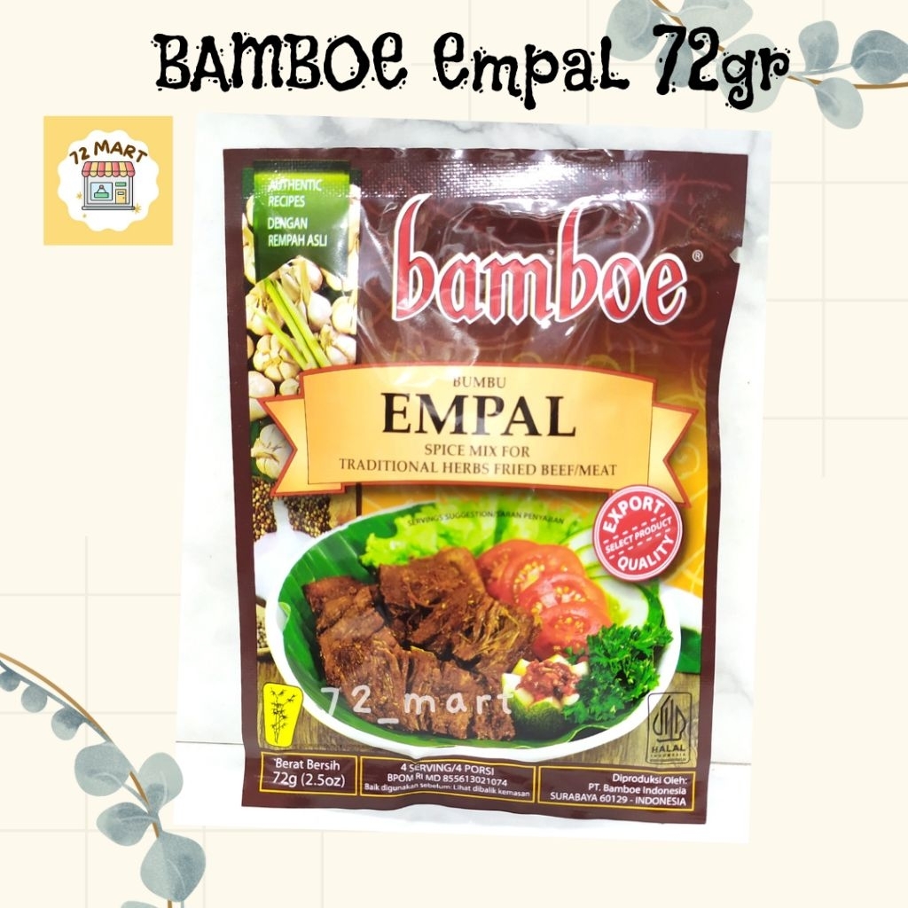 Bumbu BAMBOE diracik dari bahan-bahan alami pilihan dan rempah segar, diproses secara higienis untuk menghasilkan bumbu dengan cita rasa otentik dan kualitas ekspor. Praktis dan mudah digunakan, membantu Anda menyajikan berbagai masakan lezat khas Nusantara tanpa ribet. Dengan Bumbu BAMBOE, memasak jadi lebih cepat, hasilnya tetap nikmat seperti masakan rumahan.