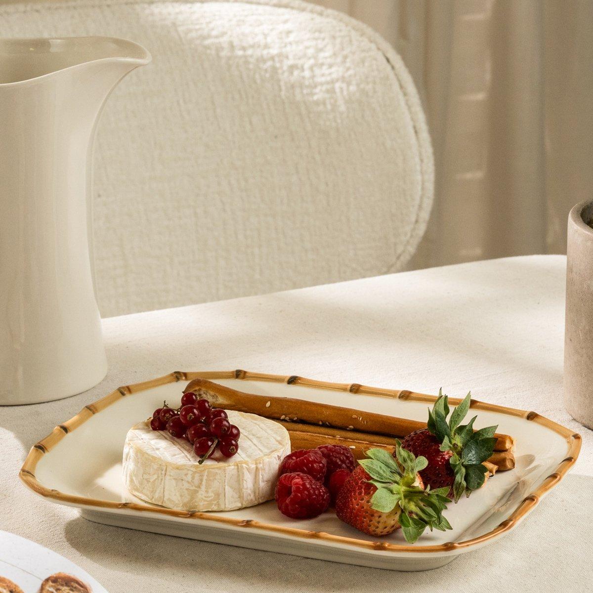 Bamboo serving plate beige 18x25 cm
