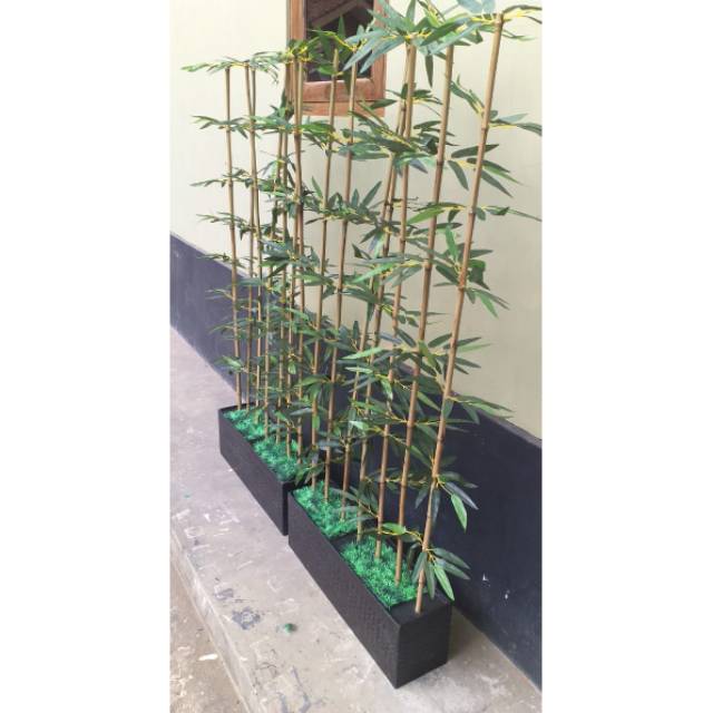 Hiasan bambu dgn daun bambu artificial untuk pembatas ruangan tinggi bambu 150cm . hrg untyk perbatang .satu kilo muat 5 btg